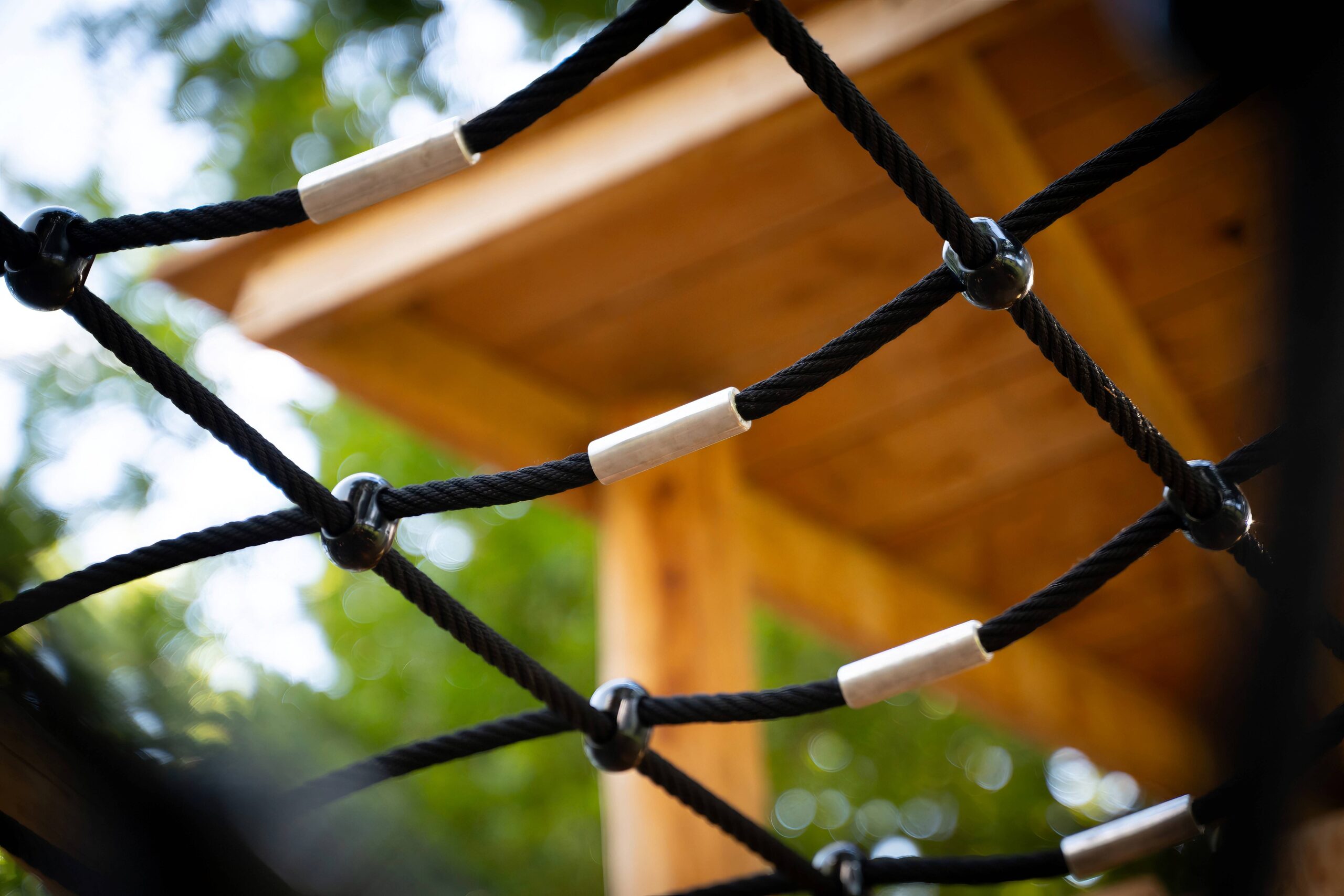 Dus begonnen we vol enthousiasme aan wat 60 meter aan speelplezier zou worden. 60 meter aan klimmen, klauteren, wiebelen, hangen, kruipen en glijden. Lekker hoog, lekker divers. Langs de bomen af, tussen de bomen door, en om de bomen heen. En bovenal: samen met de natuur.